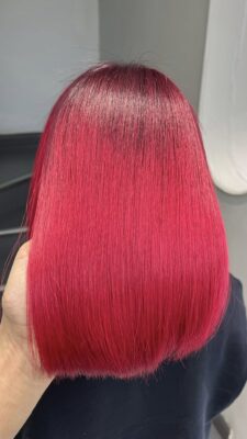 Để đạt được màu đỏ rực rỡ và độ bóng hoàn hảo như trong hình, các chuyên gia tại Kim Loan Hair Salon tuân thủ quy trình nghiêm ngặt: