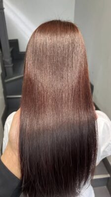Điểm đặc biệt của kỹ thuật nhuộm tại Kim Loan Hair Salon là giữ lại độ ẩm tối đa cho tóc. Mái tóc nâu sau khi nhuộm có độ bóng (glossy) rất cao, tạo cảm giác sợi tóc khỏe mạnh, suôn mượt. Một mái tóc bóng khỏe chính là biểu hiện rõ nhất của sự sang trọng.
