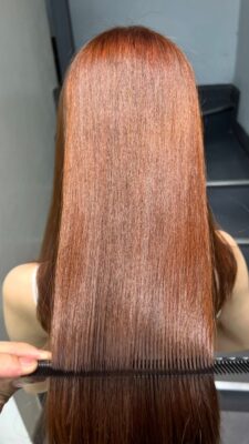 Mái tóc nhuộm nâu đồng bóng mượt, tự nhiên