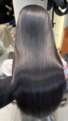 • Kỹ thuật Ép/Duỗi phục hồi: Giúp loại bỏ hoàn toàn sự xơ rối, bông xù của tóc tự nhiên, trả lại bề mặt sợi tóc phẳng mịn như tấm gương phản chiếu ánh sáng.
